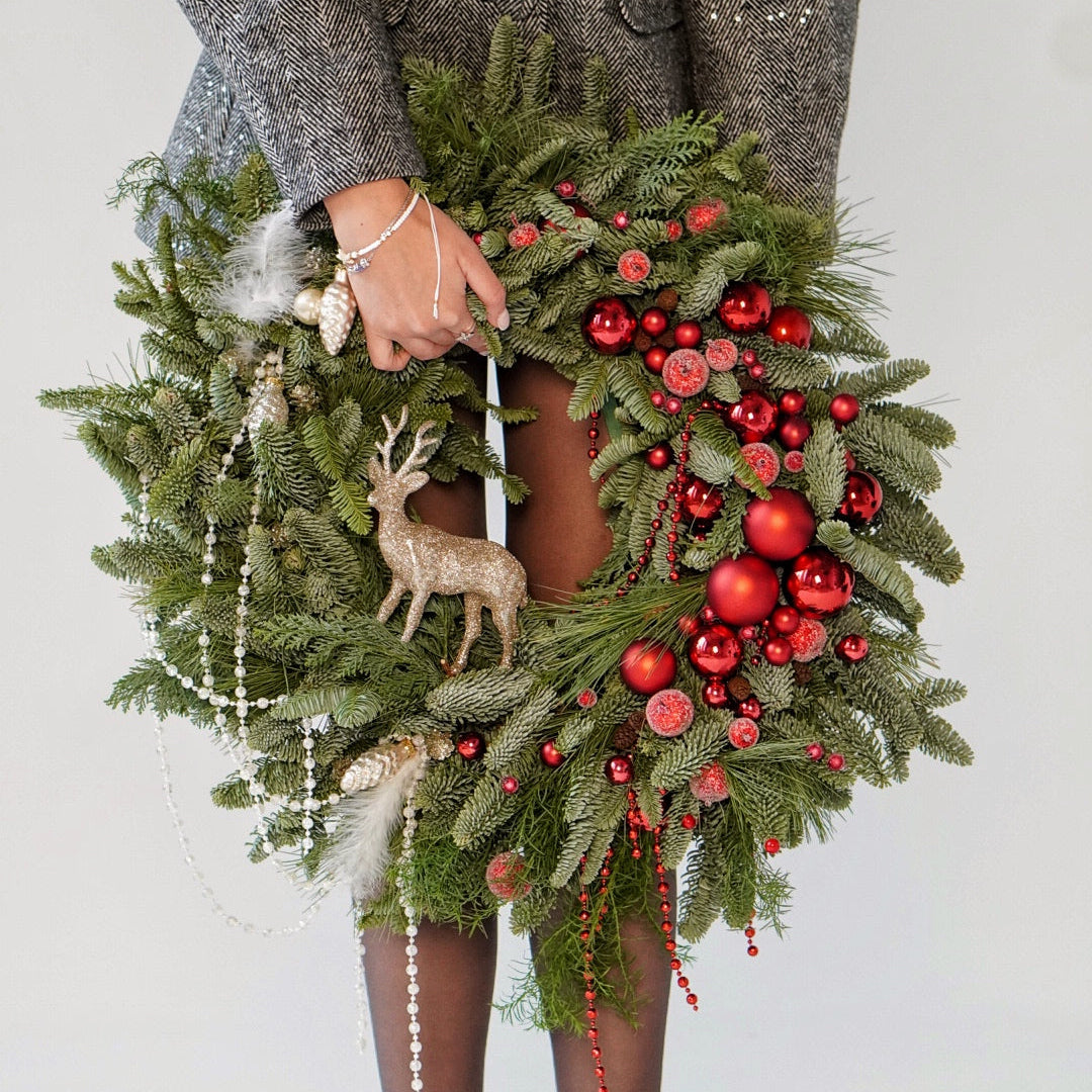 Wianek z gałązek nobilis będzie prawdziwą ozdobą twojej przestrzeni. Gałązki nobilis wyróżniają się bogatą zielenią, miękką teksturą i naturalnym sosnowym aromatem, który wprowadza do domu świąteczny nastrój. Wianek będzie cieszył oko swoją świeżością przez wiele tygodni, a nawet po wyschnięciu zachowa swoją dekoracyjność i styl. Idealny do dekoracji drzwi wejściowych, ściany lub świątecznego stołu, dodając przytulnej i zimowej atmosfery do domu.