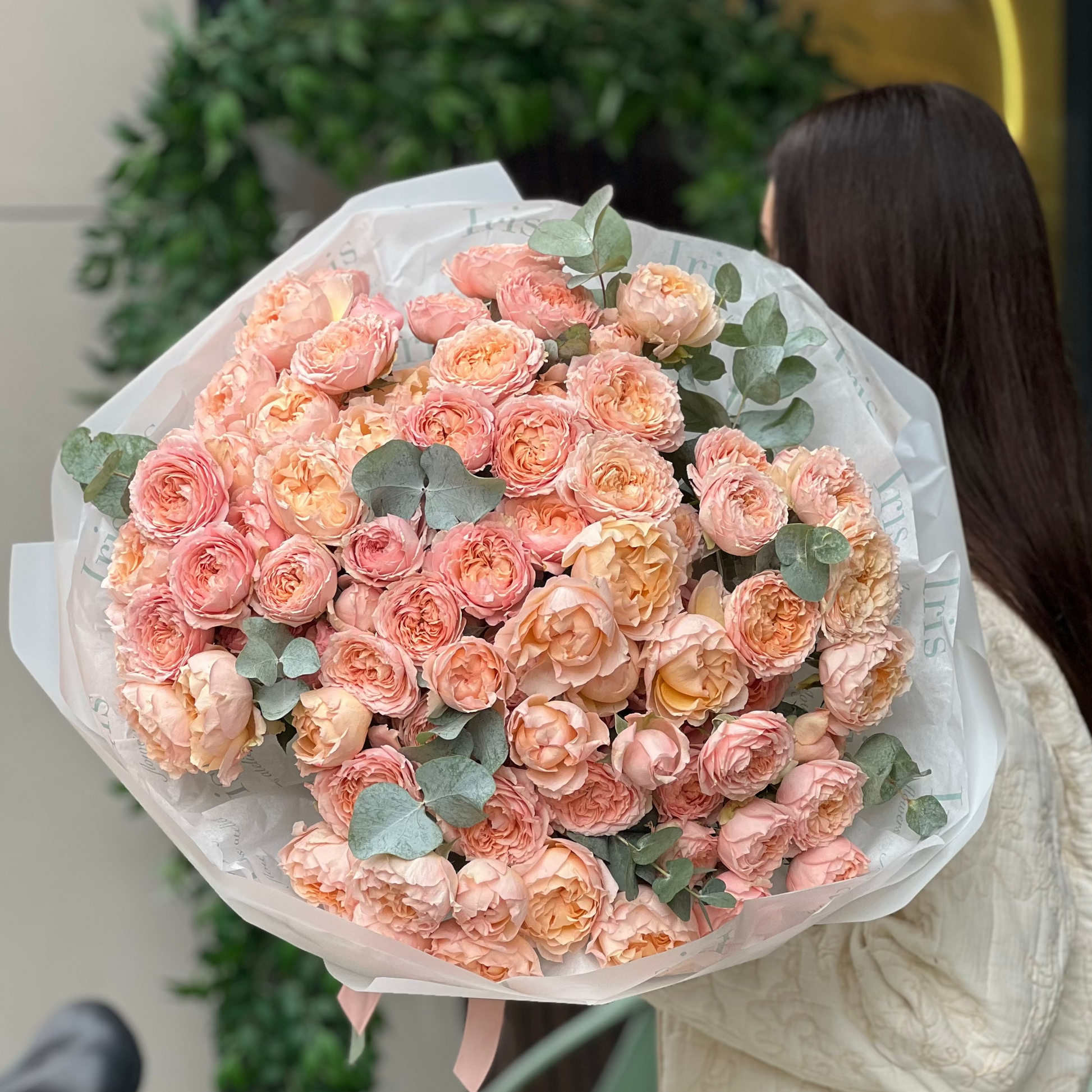 Букет кустовых пионовидных роз сорта Julietta в количестве 15 и 25 шт.