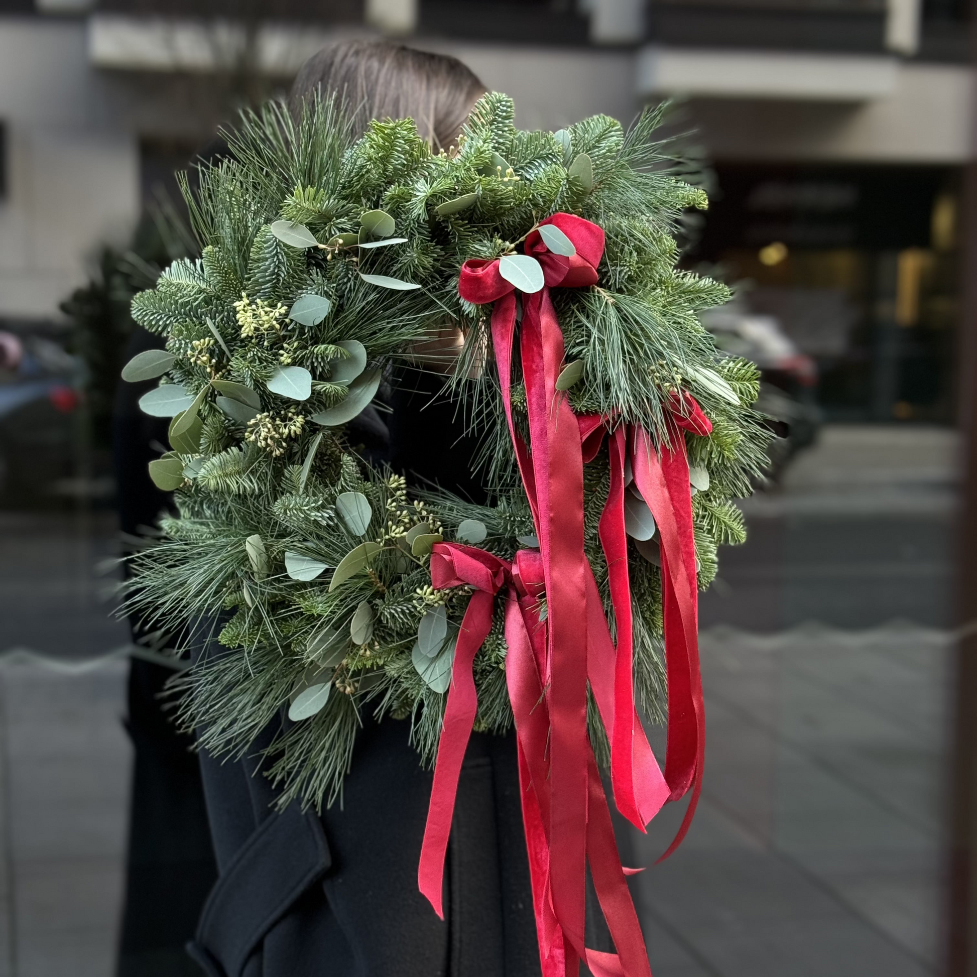 Венок из веток нобилиса станет настоящим украшением вашего пространства. Веточки нобилиса отличаются насыщенной зеленью, мягкой текстурой и натуральным хвойным ароматом, который привносит в дом праздничное настроение. Венок будет радовать глаз свежестью многие недели и даже после высыхания сохранит декоративность и стиль. Идеально подходит для украшения входной двери, стены или праздничного стола, добавляя уютную и зимнюю атмосферу в ваш дом.